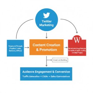 Twitter(X)アフィリエイトとWordPressは、例えるなら「集客のチラシ(Twitter)」と「信頼できる店舗(WordPress)」という非常に相性の良い関係にあります。